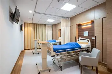 غرفة مشتركة (سريرين) بفاصل ستائر للخصوصية.